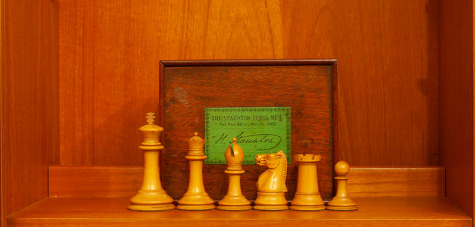 A near pristine example of an unweighted tournament set (kings just shy of 3.5"). The only damage to the set is two minor pawn collar chips (one to white, one to black - perhaps they got into a scrap). This style feels like a transition phase between "Anderssen"/"Steinitz" ("mega mouth") and the "true" Tarrasch, the examples of which I have seen tend to have a thicker head.