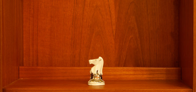 Arcadian China Knight, with the crest for the City of London. Produced, I believe, by Arkinstall and Sons (Ltd) in Stoke-on-Trent, circa 1904-1924. These decorative items were a craze in Victorian and Edwardian times with the rise in day trippers (thanks to the railways) who wanted to buy an ornament decorated with the local coat of arms as a momento of their trip.