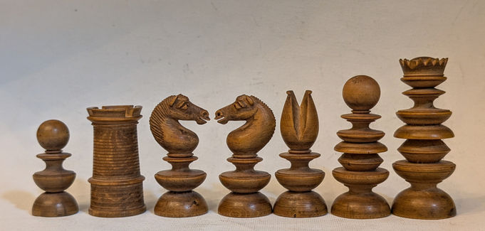 One of my favourite sets in the cabinet, this set could be late 18th century, possibly very early 19th century due to the "urn" like turning. I had believed this was possibly made from fruitwood (having compared to similar sets), but have been reliably informed that it is actually made from boxwood.