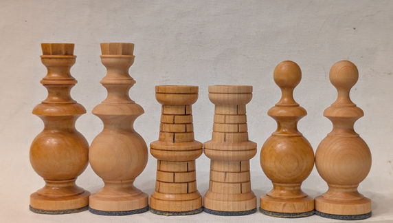 An unusual modern reproduction of a Tsarist Russian set, made by Valery in Kharkiv, Ukraine - a sobering thought, given the horrors that that city and its inhabitants have been through. The set came with two stickers/labels "Krasnikov&F Perfect Replica Rarest Chess Sets" - so I have recorded the maker as Krasnikov&F in my database.
