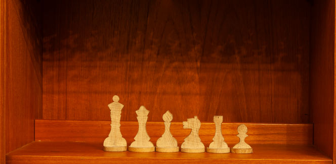A basic set made by Spalding in the UK during World War 2 - the registered design number dating from 1940-1943 (I haven't been able to narrow it down yet). The set is housed in its original drawstring canvas bag. Each piece stamped on the bottom - the white pieces with a different stamp to the black pieces. "Pat applied for" under the white pieces, so this would be an early version of the set - whether a patent was ever issued is another topic for research. If you can decipher what it says under the black pieces, please let me know!