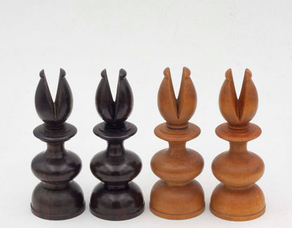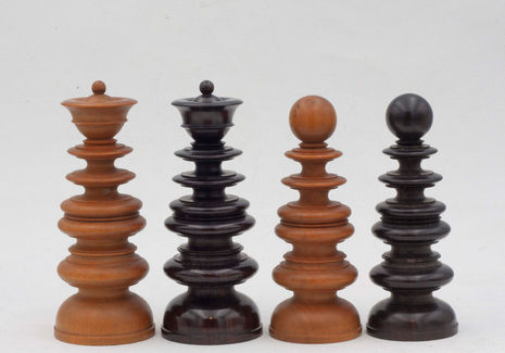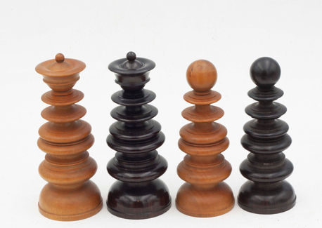 Purchased from Dermot and Ciaran Rochford (finerpieces.com) - this is a beautiful set in rosewood and boxwood (?) from the first half of the 19th century. The Rochfords thought the knights had more than a passing resemblance to those by George Merrifield, one of the best carvers of his day.
